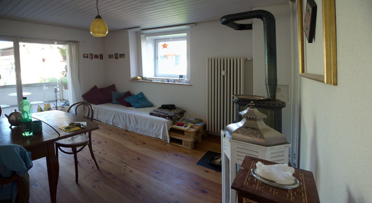 Die "geerdetste" Wohnung, mit Terrasse (ca. 12qm) mit direktem Ausgang auf den Hausplatz und in den Garten.